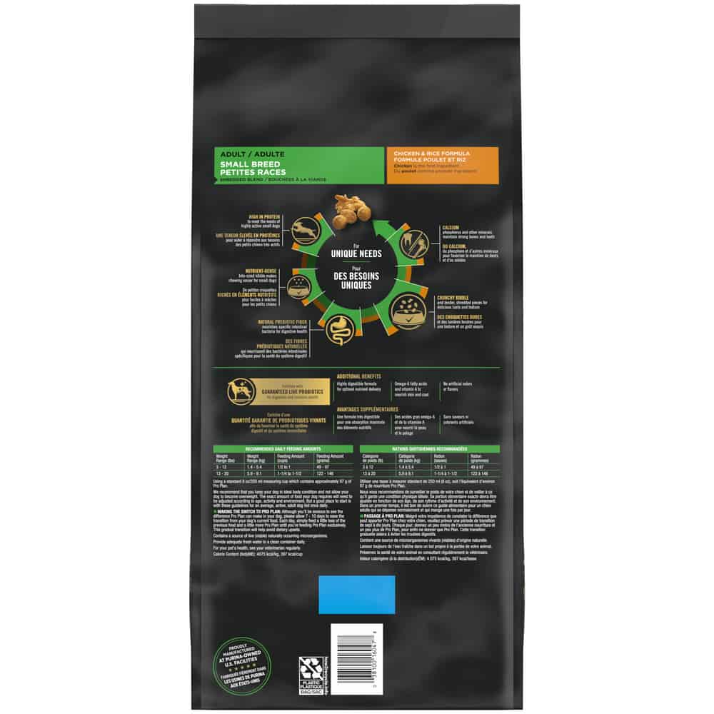 Take care of the nutritional needs of your small breed dog by feeding them Purina Pro Plan Brand Dog Food Small Breed Shredded Blend Chicken and Rice Formula adult dry dog food every day. With a perfect balance of nutrition and flavor, this crunchy and tender blend with chicken and rice offers a taste and texture dogs love. Manufactured in Purina-owned U.S. facilities, Purina Pro Plan Brand Dog Food Small Breed Shredded Chicken and Rice Formula is a 100 percent complete and balanced adult dog food for your adult dog under 20 pounds.