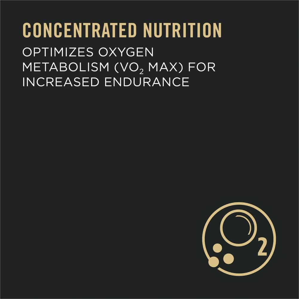 - Concentrated nutrition optimizes oxygen metabolism (VO2 MAX) for increased endurance.