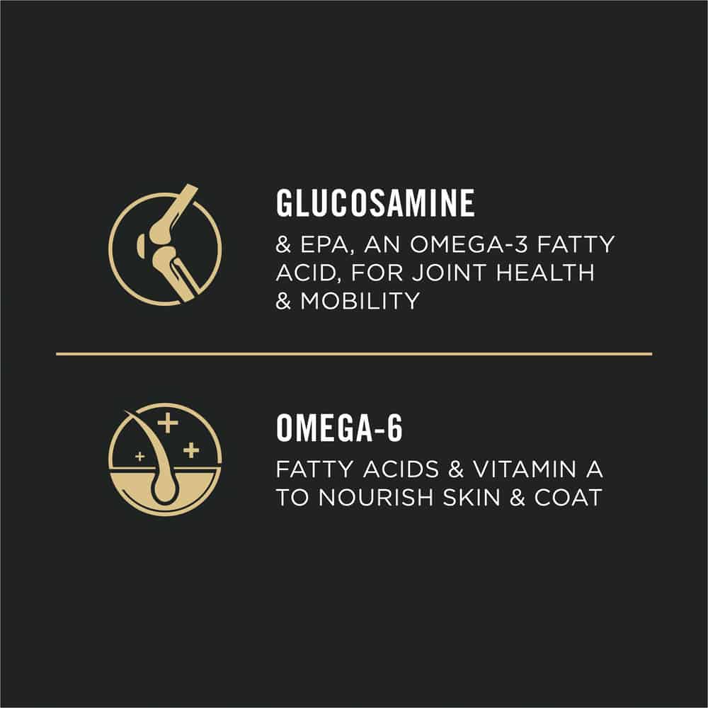 - EPA, an omega-3 fatty acid, and glucosamine help support joint health and mobility.