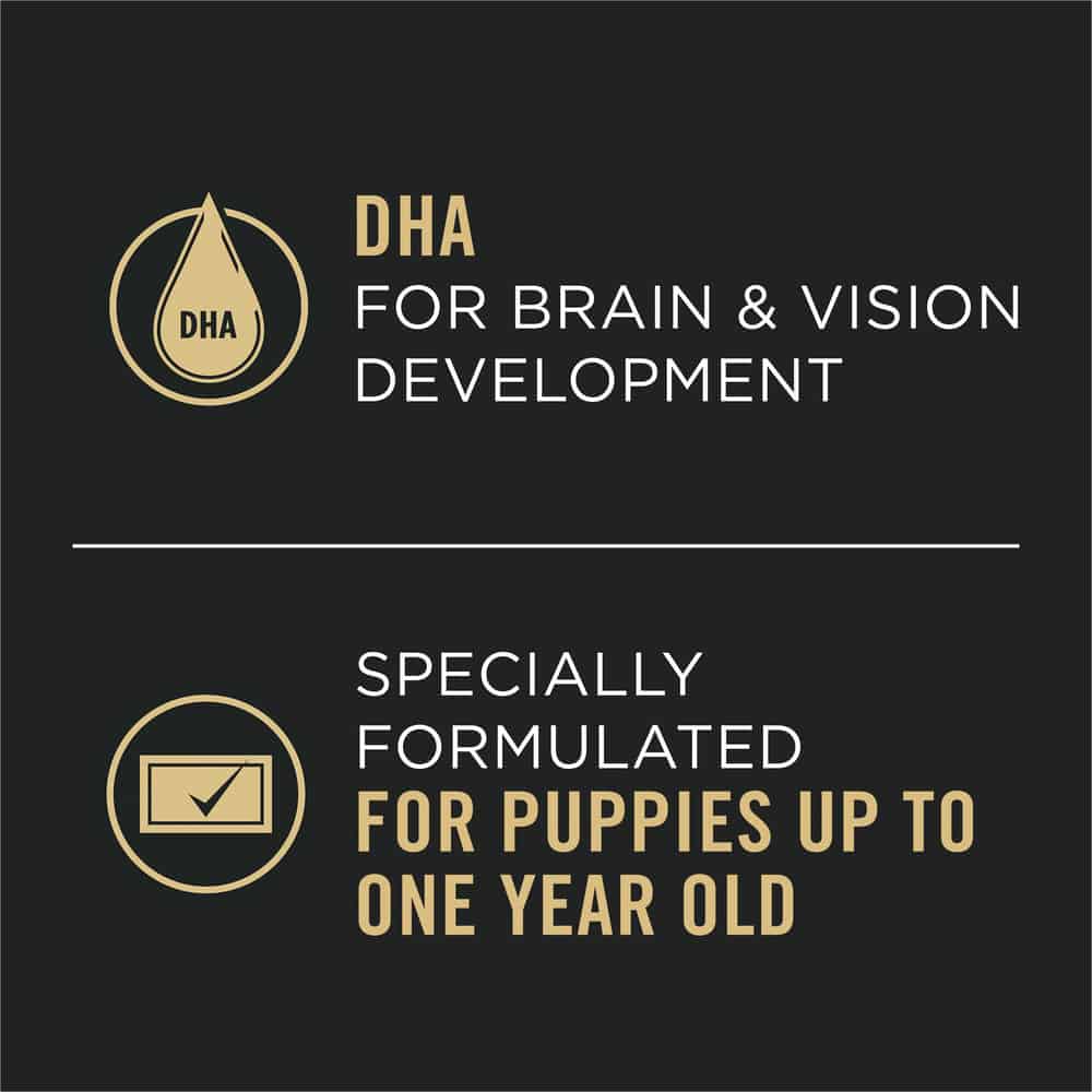- Specially formulated for puppies up to 1 year old and includes DHA for brain and vision development