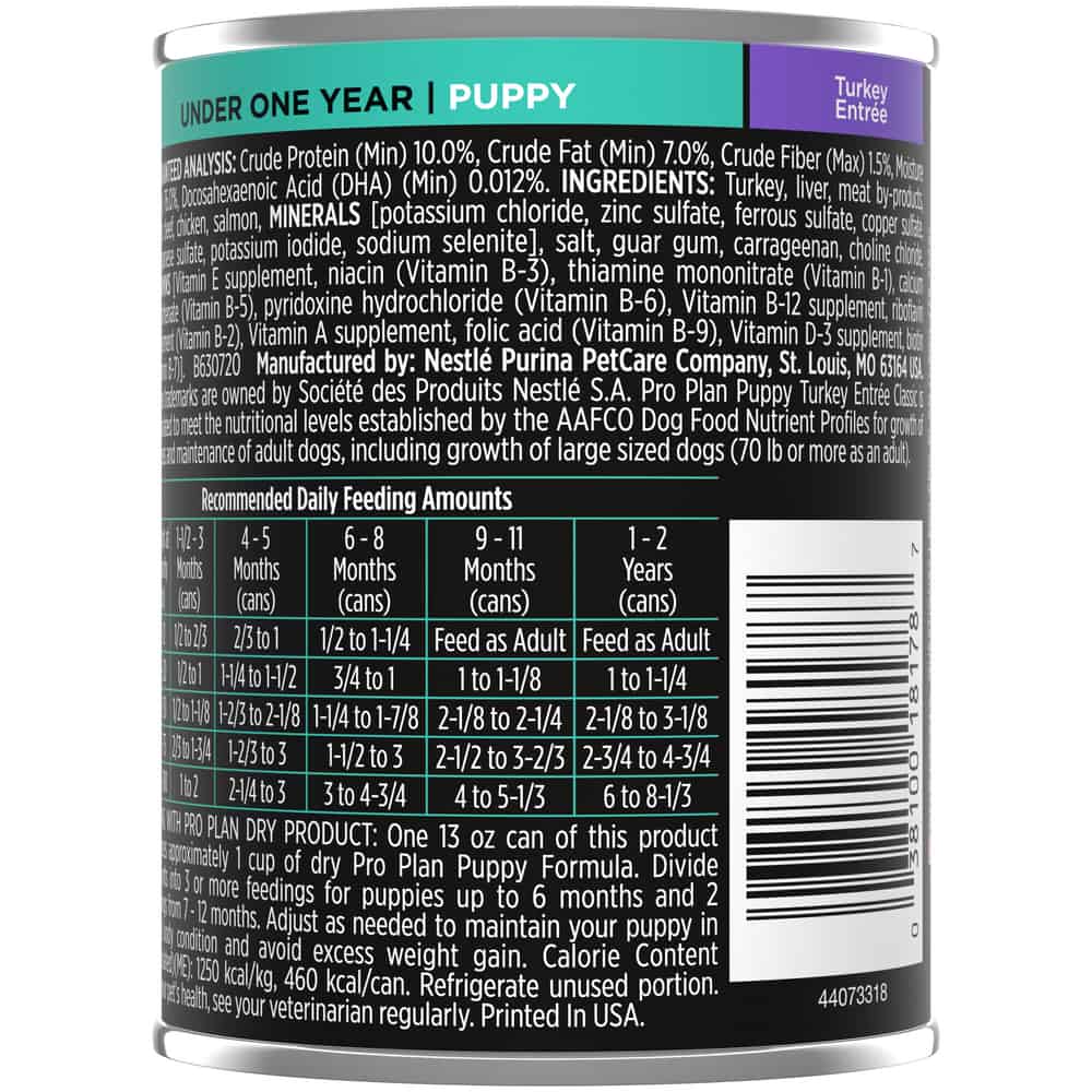 Purina Pro Plan Puppy Turkey Entree Classic Wet Dog Food Directions: