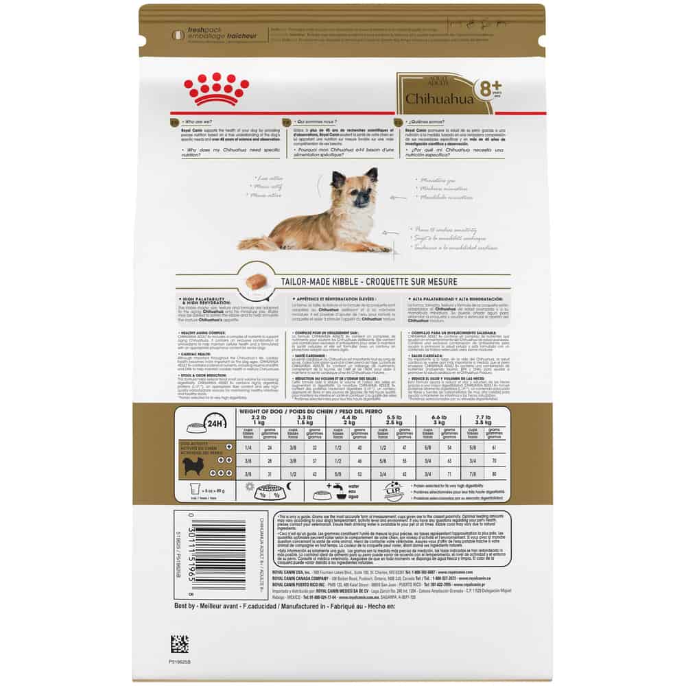 - FORMULATED FOR PUREBRED CHIHUAHUAS: Royal Canin Chihuahua Adult 8+ Dry Dog Food is designed to meet the nutritional needs of purebred senior Chihuahuas 8 years and older