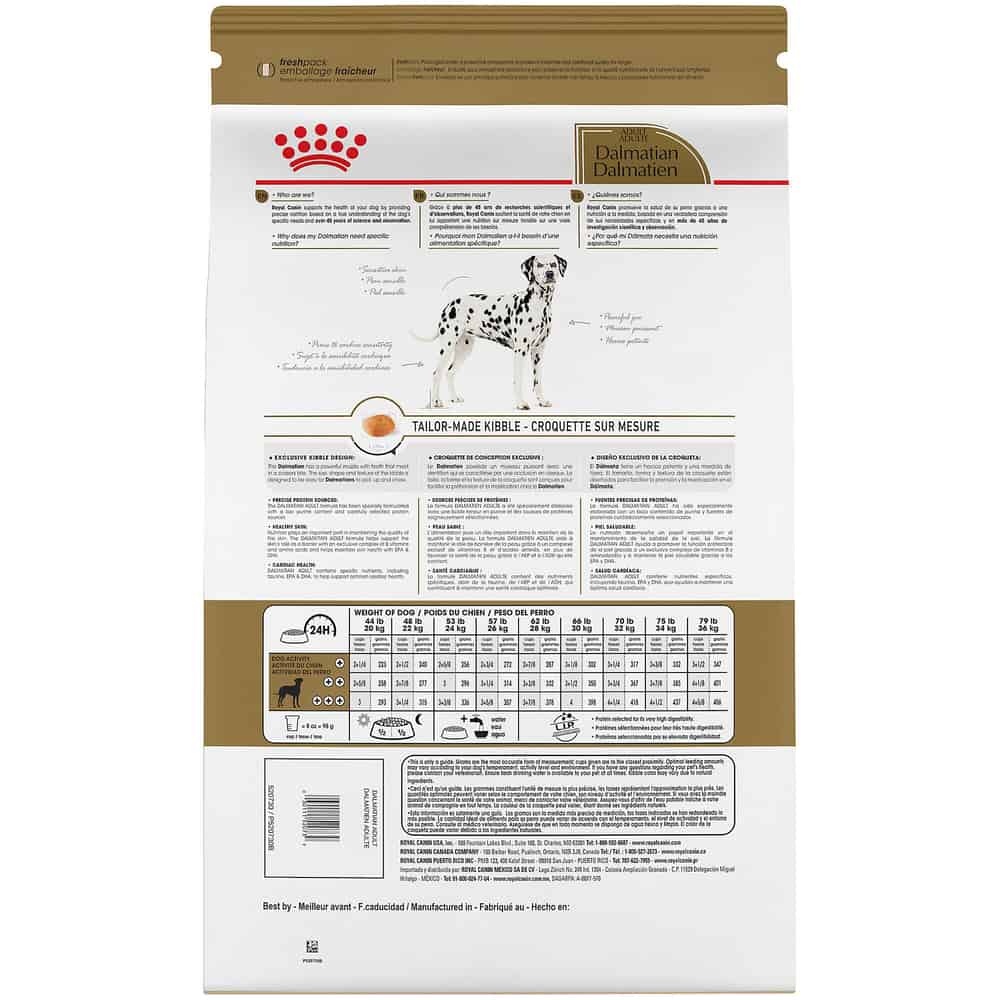 - FORMULATED FOR PUREBRED DALMATIANS: Royal Canin Dalmatian Adult Dry Dog Food is designed to meet the nutritional needs of purebred Dalmatian 15 months and older