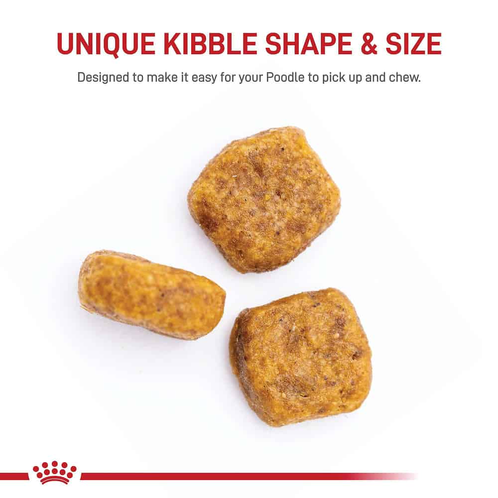 - SPECIALIZED KIBBLE: Specialized kibble shape and texture designed for a Poodle's straight muzzle and jaw