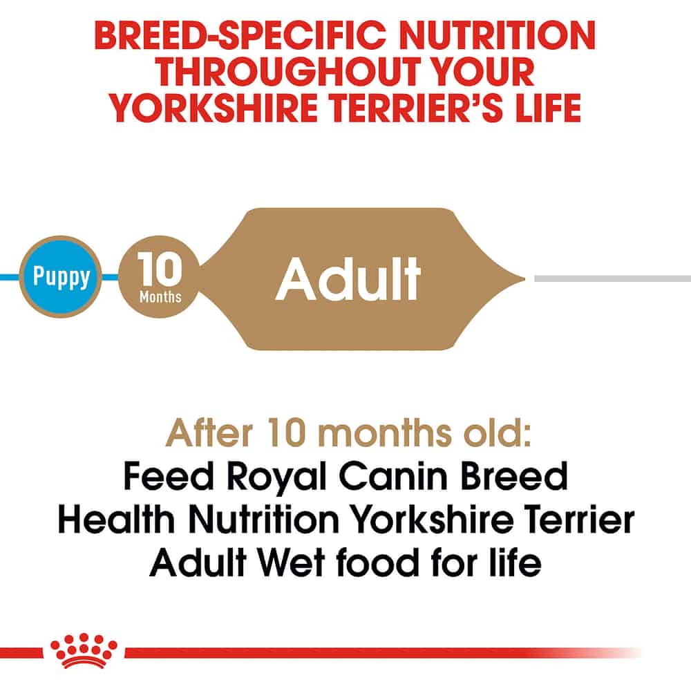 - FORMULATED FOR PUREBRED YORKSHIRE TERRIERS: Royal Canin Yorkshire Terrier Adult Wet Dog Food is designed to meet the nutritional needs of purebred Yorkshire Terriers 10 months and older