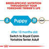 • Once your Yorkshire Terrier puppy is over 10 months old, transition them to Royal Canin Yorkshire Terrier Adult Dog Food for precise nutrition into their adult years.