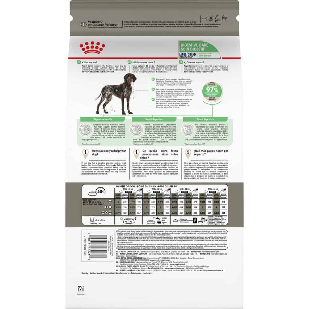 Royal Canin Canine Care Nutrition Large Breed Digestive Care Adult Dry Dog Food is tailored nutrition to support your large dog’s sensitive stomach. In fact, 97% of medium dogs fed Digestive Care had optimal stool quality, a clear sign of positive digestion health.