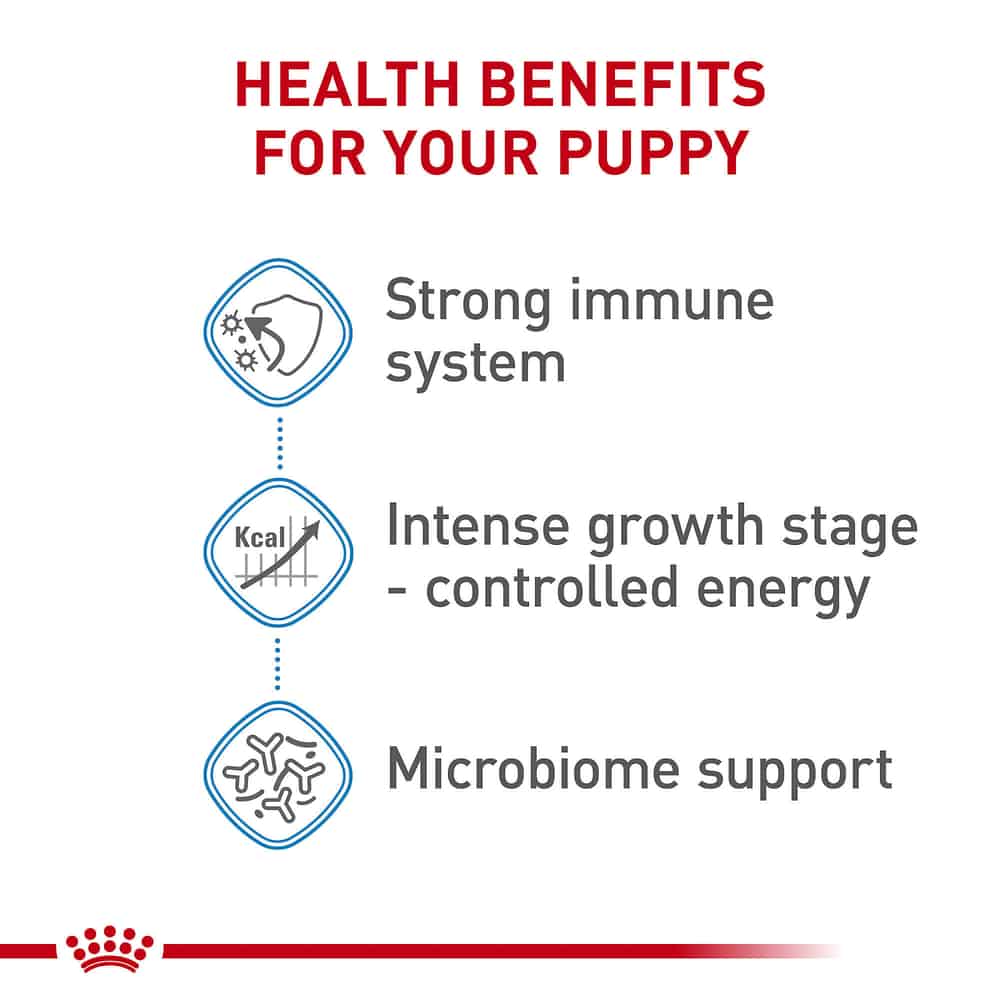 - PUPPY ESSENTIALS AS THEY GROW: When giant puppies reach 8 months, switch them to Royal Canin Giant Junior to support their muscle development stage up to 24 months old