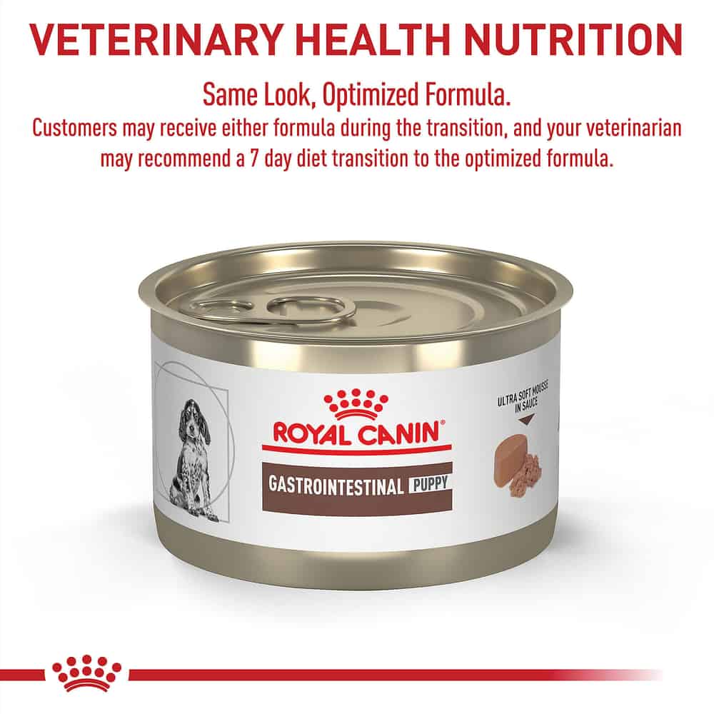 - When feeding Dry + Wet, this food is best mixed with Royal Canin Veterinary Diet Canine Gastrointestinal Puppy Dry Dog Food.
