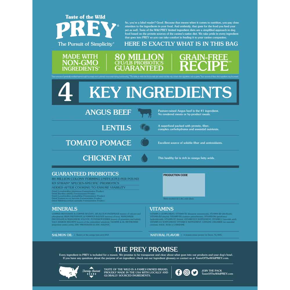 What is Taste of the Wild PREY Angus Beef Limited Ingredient Recipe Dry Dog Food?