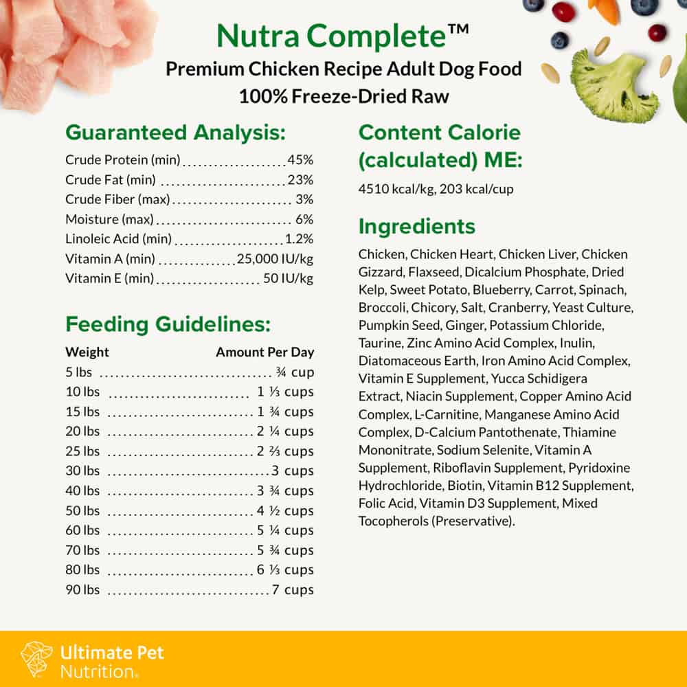 Ultimate Pet Nutrition Nutra Complete Freeze Dried Raw Chicken Dog Food Directions:
