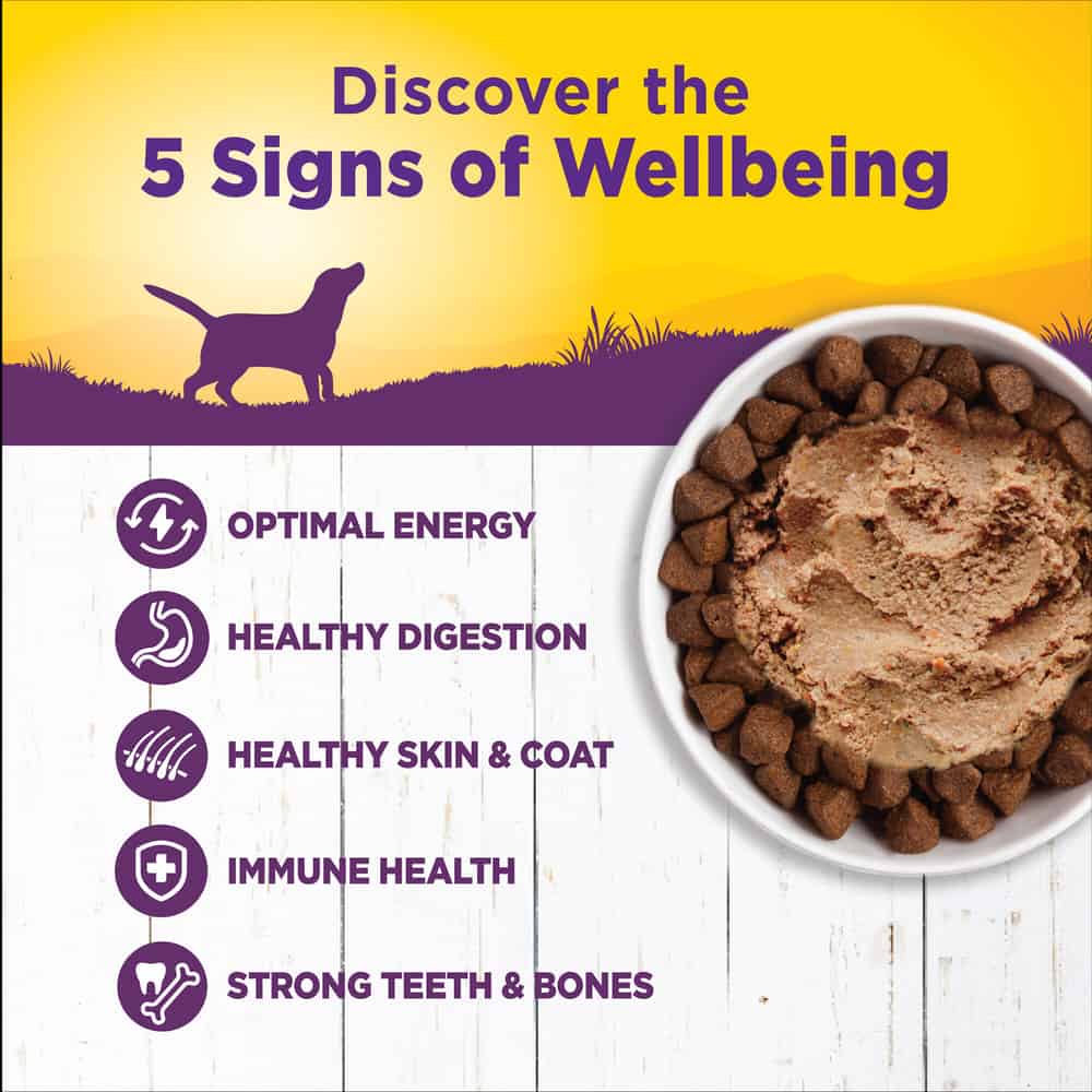 A mix of wet and dry dog food can make mealtime more enjoyable for your furry friend. Try pairing with a Wellness Dry Dog Food for variety of different textures they will love.