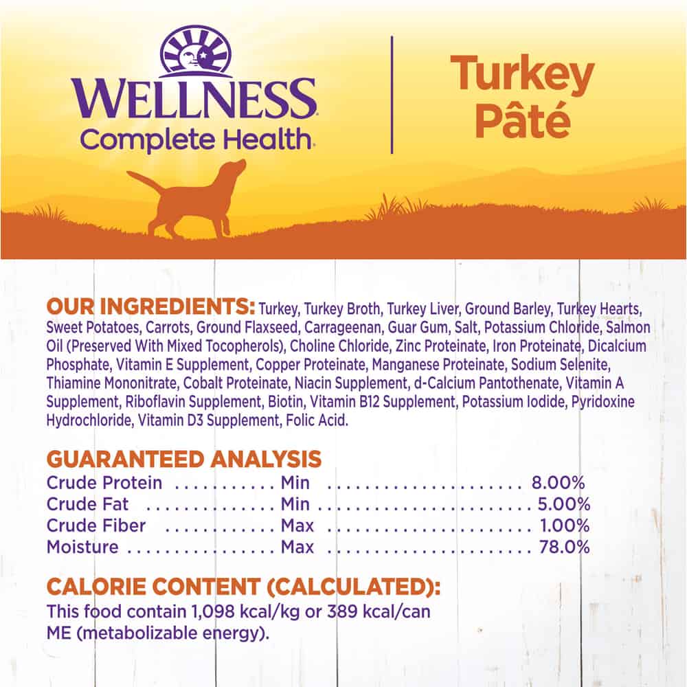 Wellness Complete Health Natural Canned Turkey & Sweet Potato Wet Dog Food Ingredients: