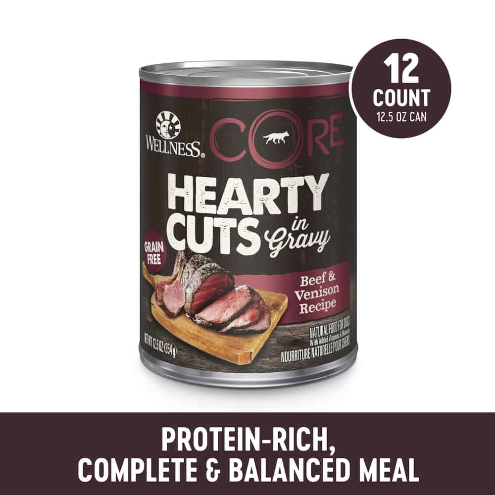 Make mealtime meatier with CORE Hearty Cuts! Thick meaty cuts of protein in a rich, delicious gravy mixed with superfoods such as sweet potatoes and broccoli to ensure your dog has the nutrition they need to thrive from the core