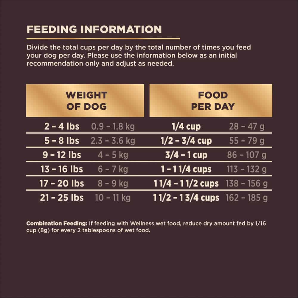 Wellness CORE+ Natural Grain Free Small Breed Original Turkey & Chicken with Freeze Dried Turkey Dry Dog Food Feeding Guidelines: