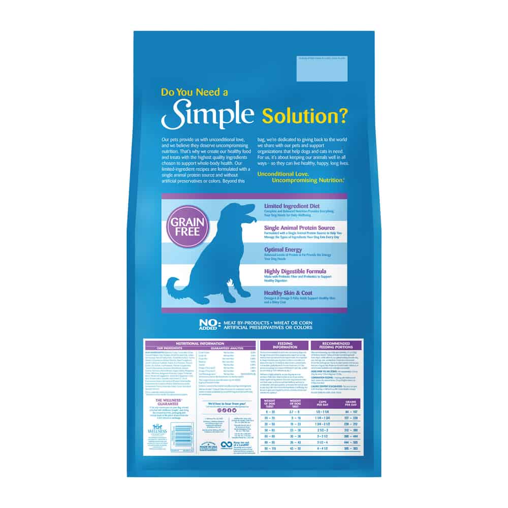 Wellness Simple Limited Ingredient Diet dog food formulas keep it simple with a balance of single source of protein and easily digestible carbohydrates, without extra fillers or additives, including no meat by-products, wheat, corn, dairy, eggs, artificial preservatives, colors or flavors.