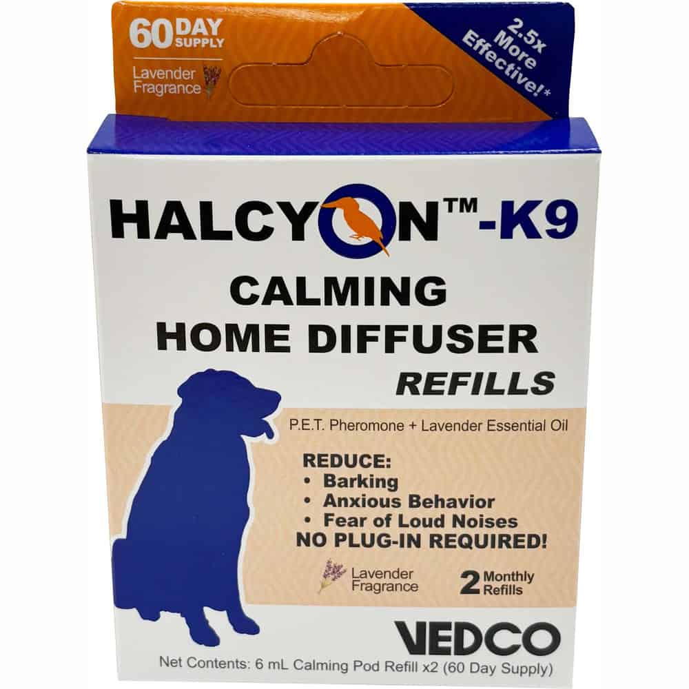 The Halcyon-K9 Diffuser is a plug-in device that emits a synthetic version of the dog appeasing pheromone (DAP), which is naturally released by mother dogs to calm and reassure their puppies. This helps create a calming and comforting environment for dogs, reducing stress and anxiety.