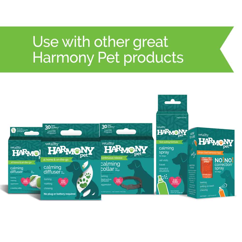 - Harmony Pet Calming collar uses the P.E.T. Pheromone, proven to work 2.5 times better than other leading calming brands.