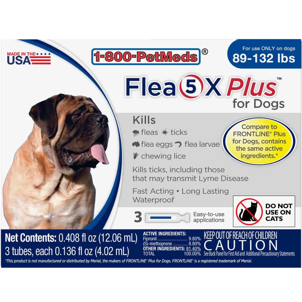 Flea5X Plus for Dogs & Puppies 8 weeks or older, 89-132 lbs: