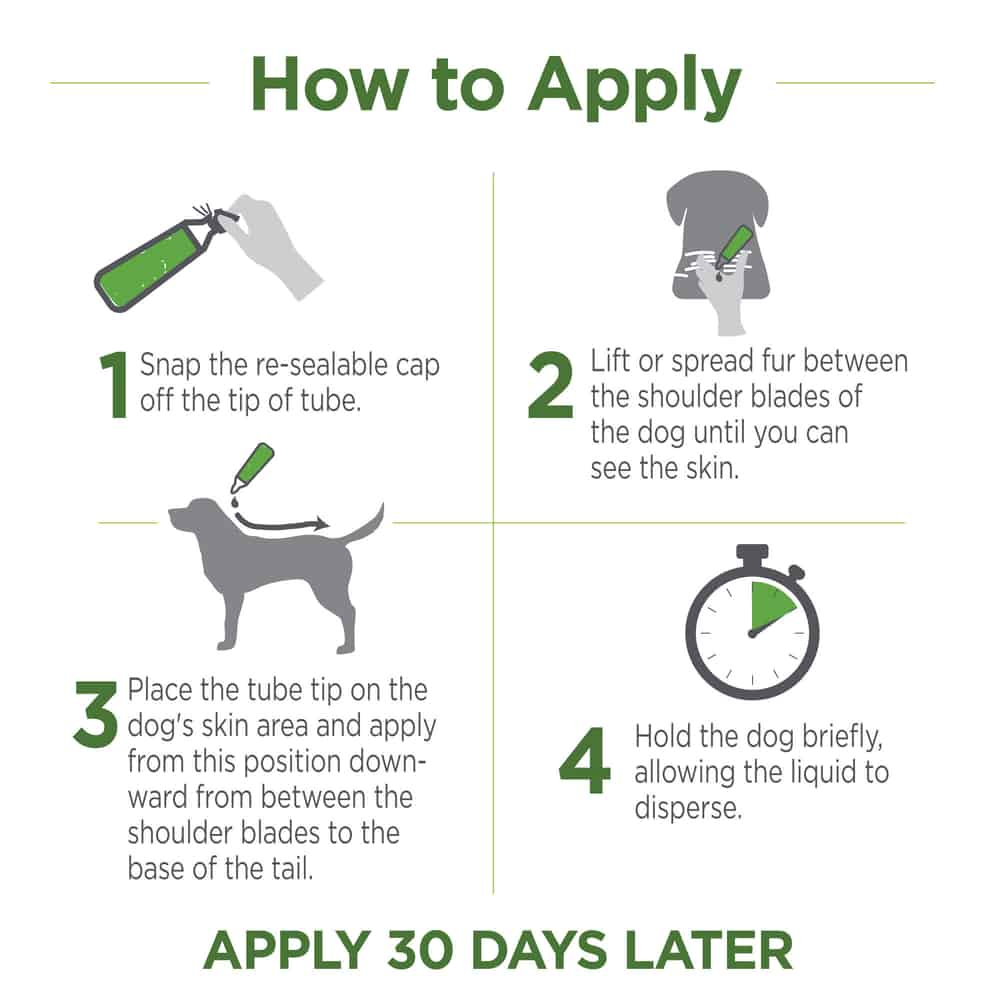 - For Dogs 12 weeks of age or older. Apply once per month for continuous protection or more frequently as needed, but not more often than once every 2 weeks.