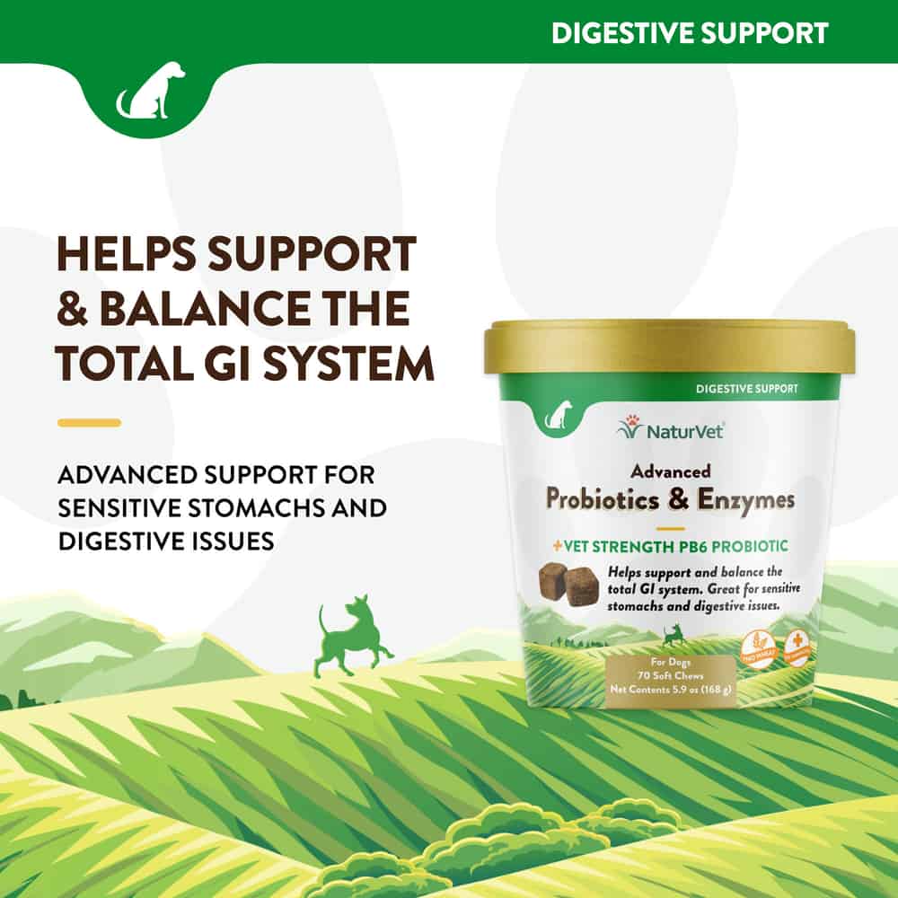 NaturVet Advanced Probiotics and Enzymes Plus Vet Strength PB6 Probiotic Supplement for Dogs