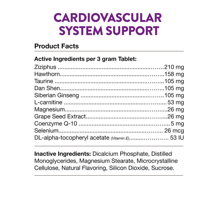 Synergistic blend of botanicals, antioxidants, and amino acids help to support the cardiovascular system; Hawthorn and Magnesium helps to support the normal function on the cardiac muscle; Siberian Ginseng, Ziziphus, Dan Shen, Taurine and L-carnitine help promote optimal coronary circulation, while the antioxidants help to reduce free radical damage