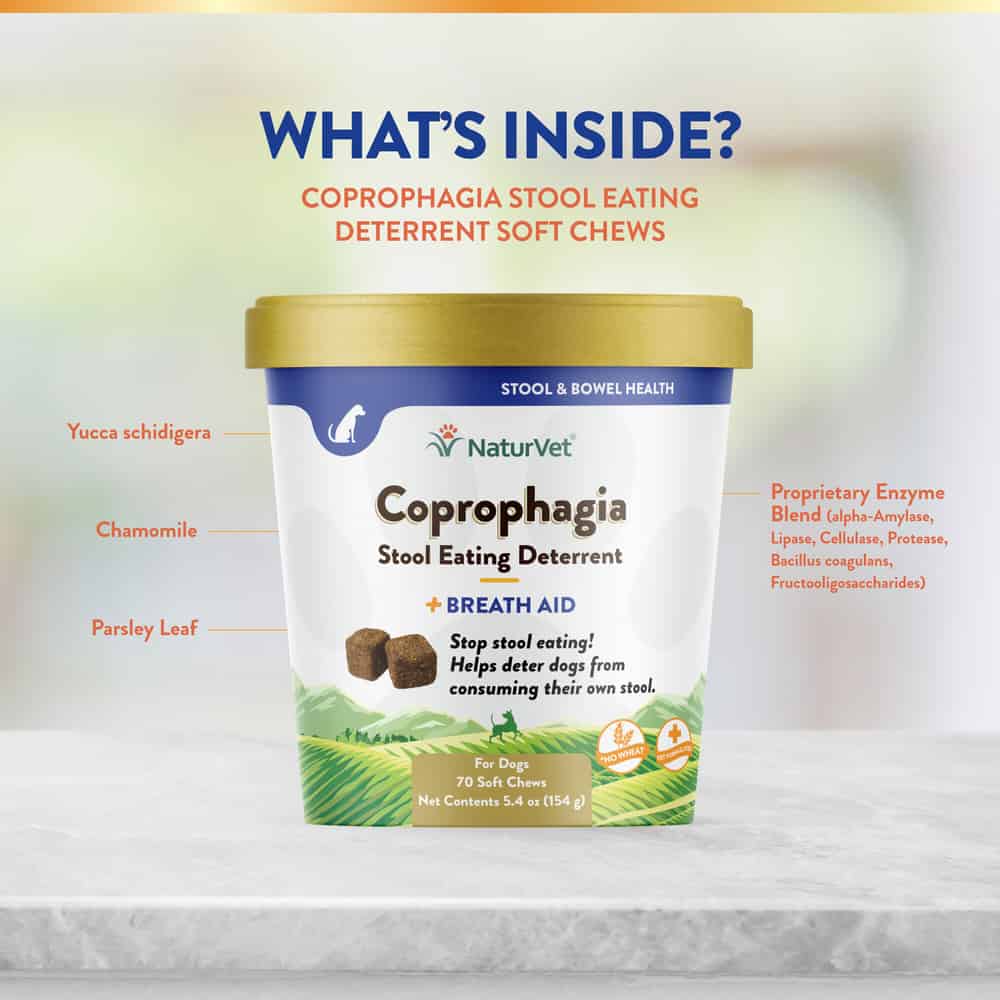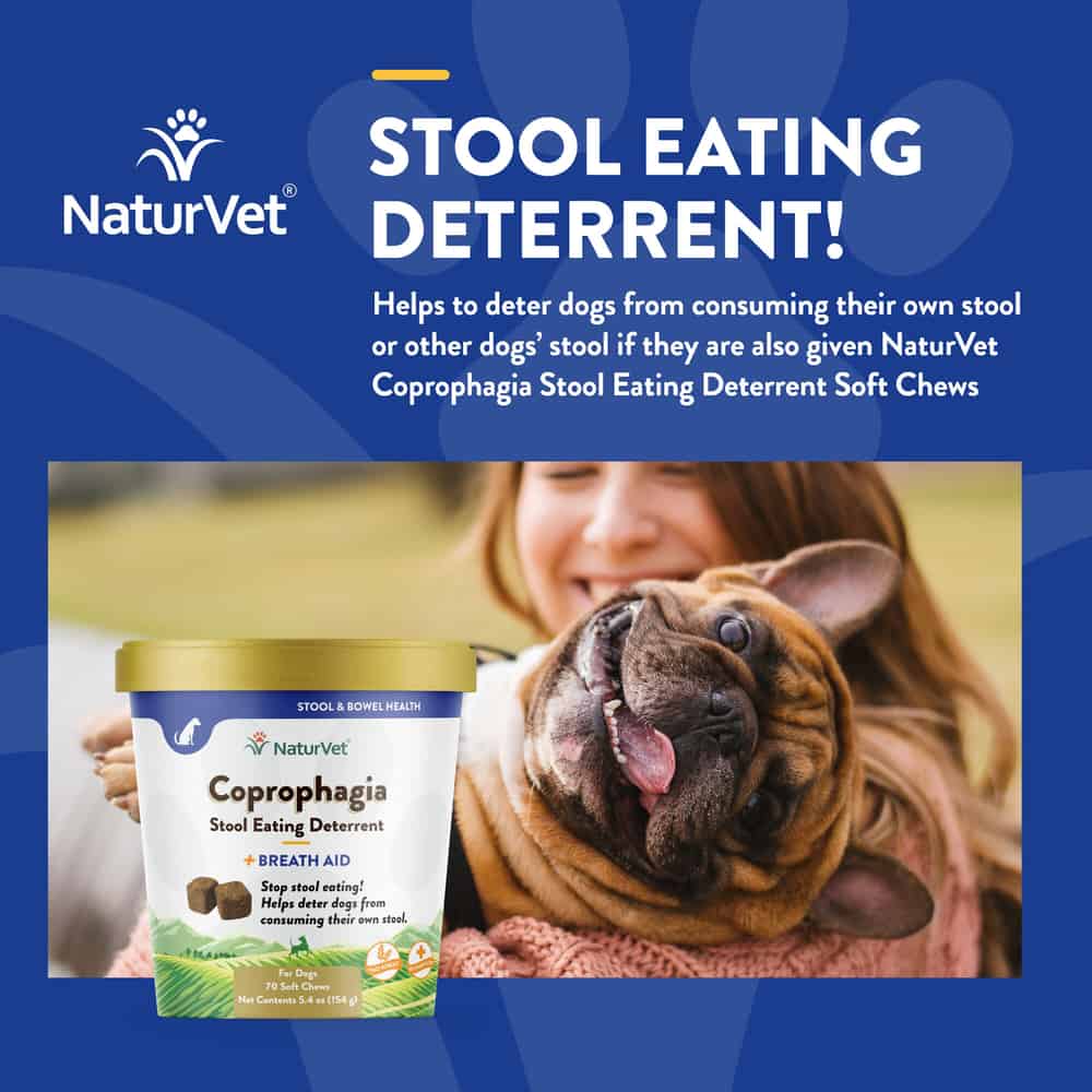 - Stop that nasty habit! Coprophagia helps to deter dogs from consuming their own stool, or other dogs' stool if they are also given NaturVet Coprophagia Stool Eating Deterrent