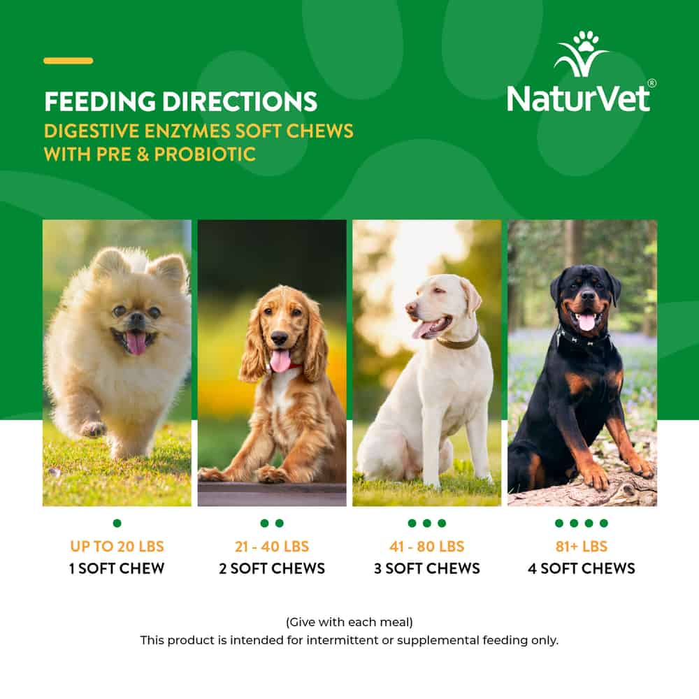 NaturVet Digestive Enzymes Plus Pre & Probiotic Supplement for Dogs Directions: