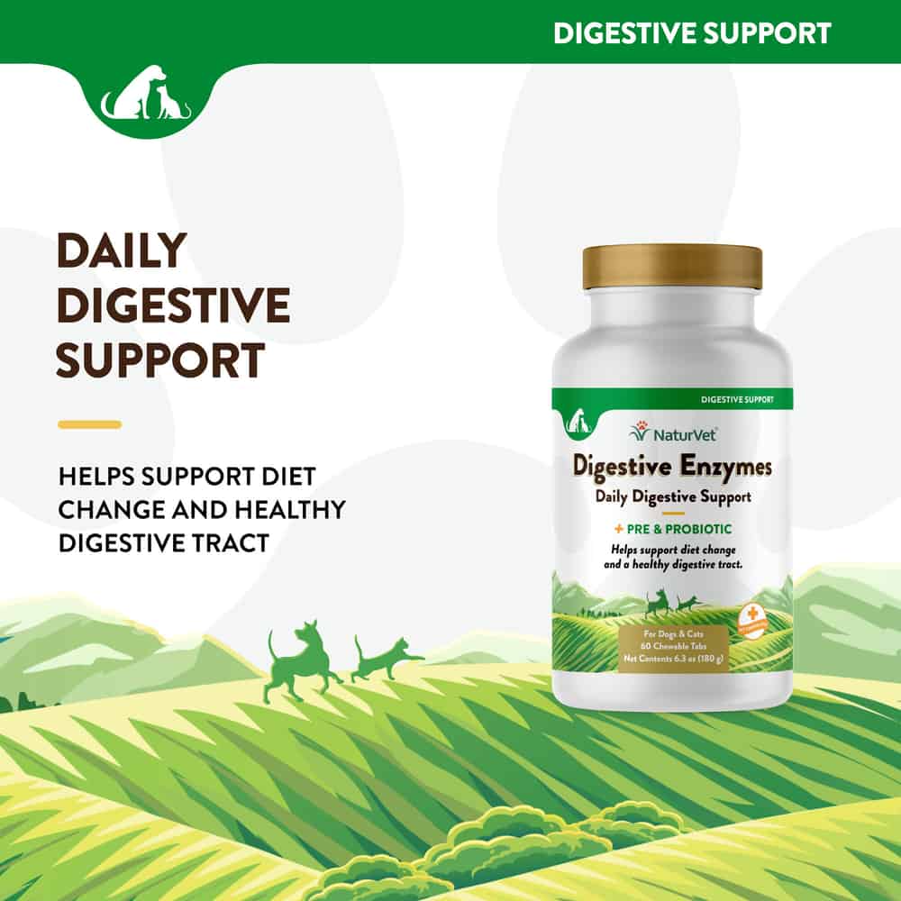 NOTE:NaturVet Digestive Enzymes Plus Probiotic Soft Chews for DogsandNaturVet Digestive Enzymes Plus Probiotic Powderare also available.