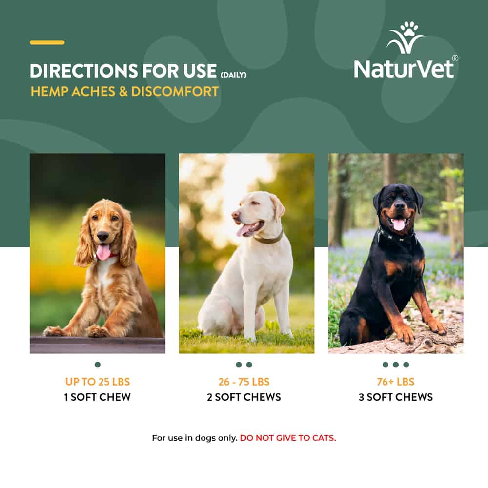 NaturVet Hemp Aches & Discomfort Plus Hemp Seed Supplement for Dogs Dosage: