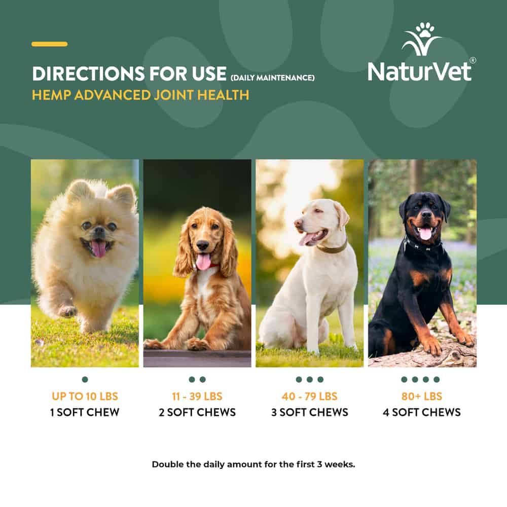 NaturVet Hemp Advanced Joint Health Supplement with Collagen for Dogs Directions: