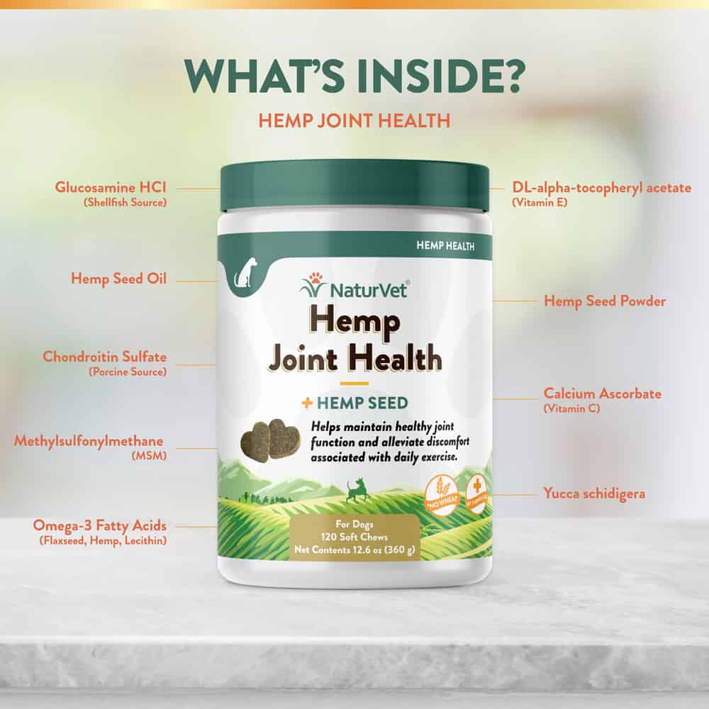 NaturVet Hemp Joint Health Plus Hemp Seed Supplement for Dogs Ingredients: