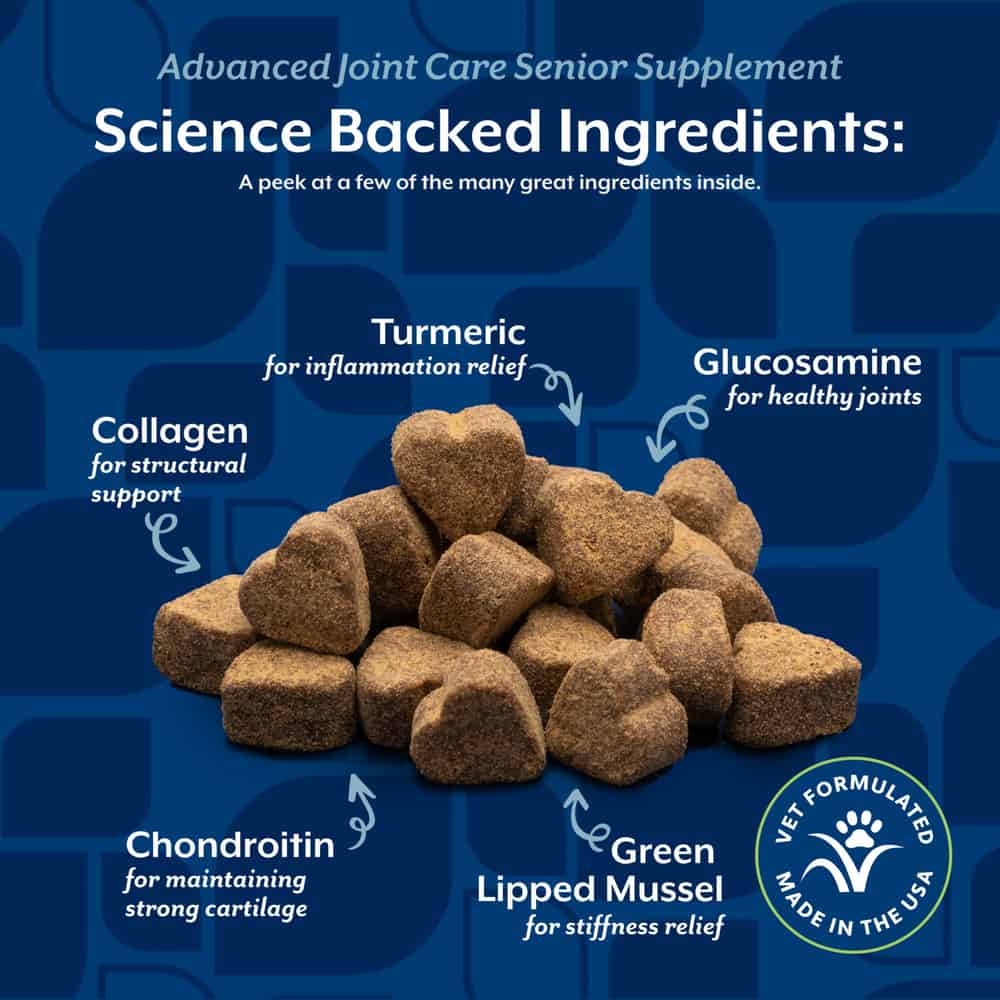 Helps support connective tissue, cartilage health, joint movement, and lubrication of joints in senior dogs, or when the most support is needed.