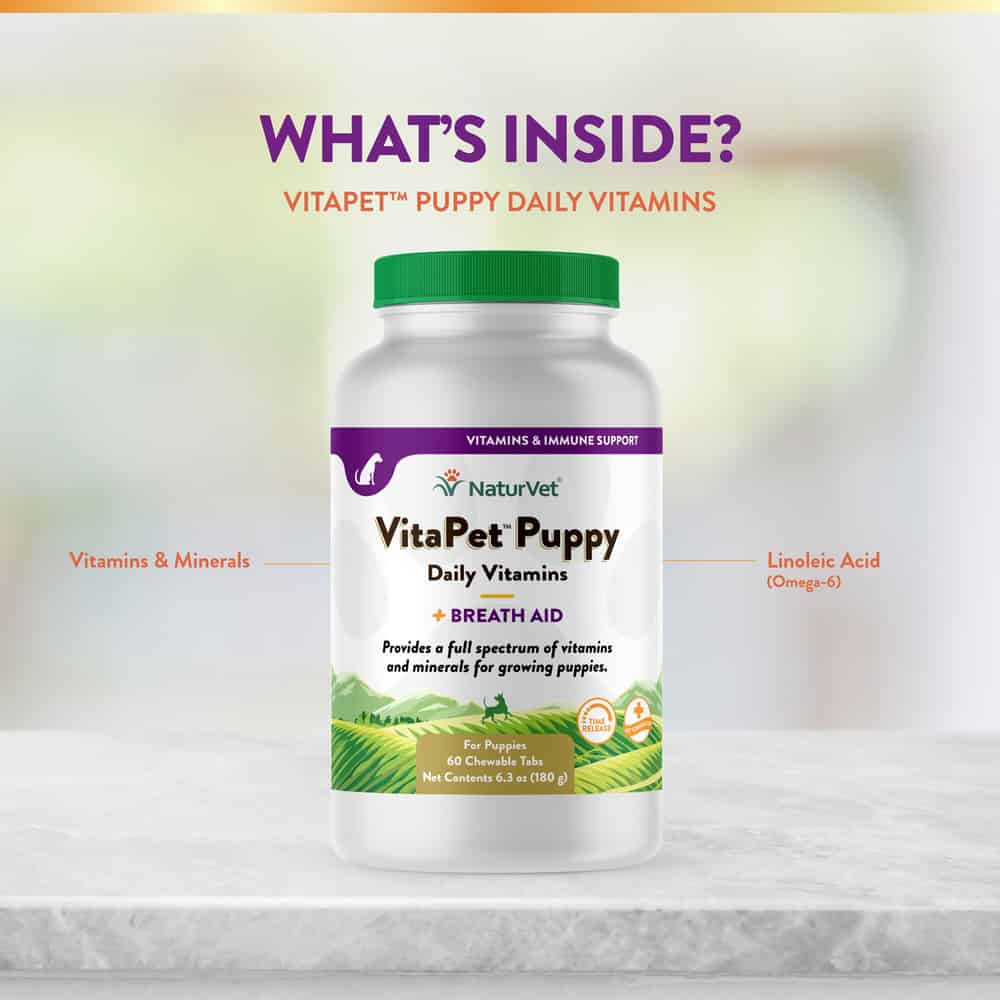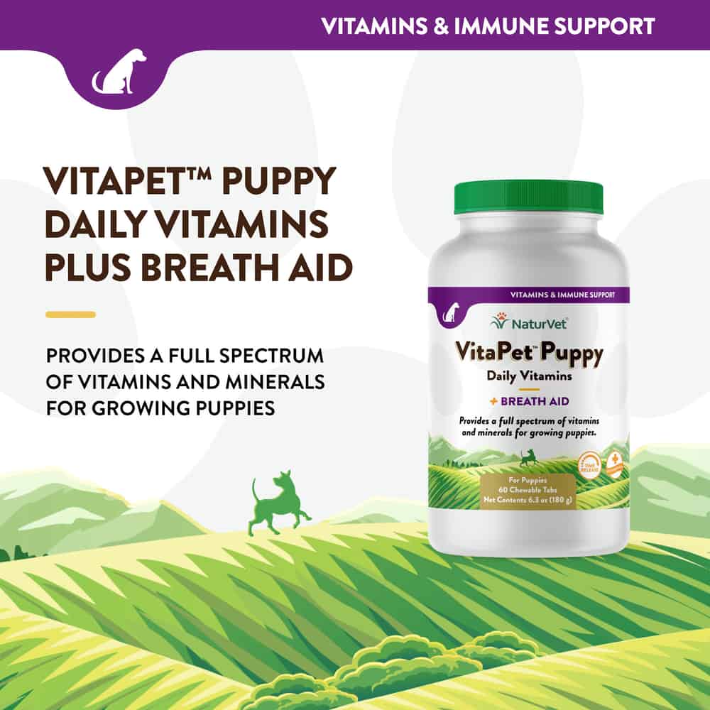 NaturVet VitaPet Puppy Daily Vitamins Plus Breath Aid Supplement for Dogs Directions:
