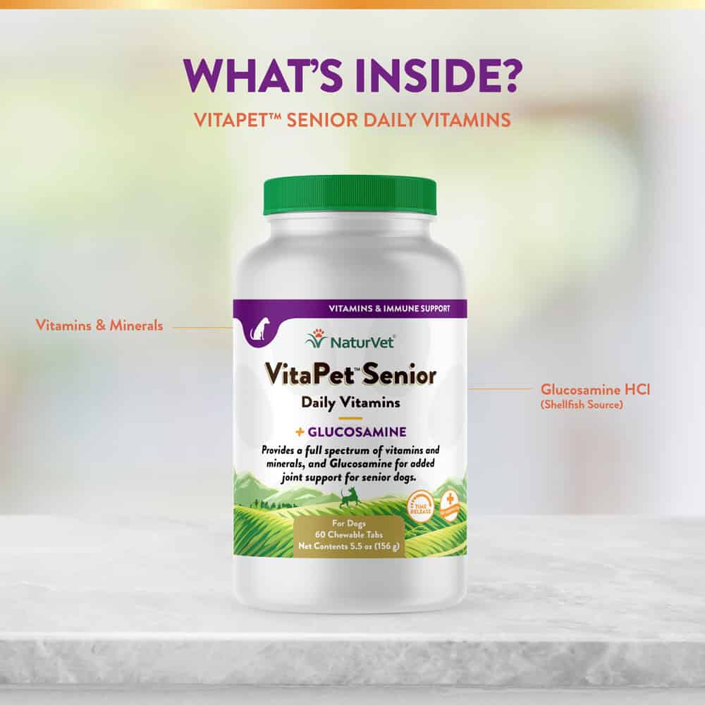 NaturVet VitaPet Senior Daily Vitamins Plus Glucosamine Supplement for Dogs