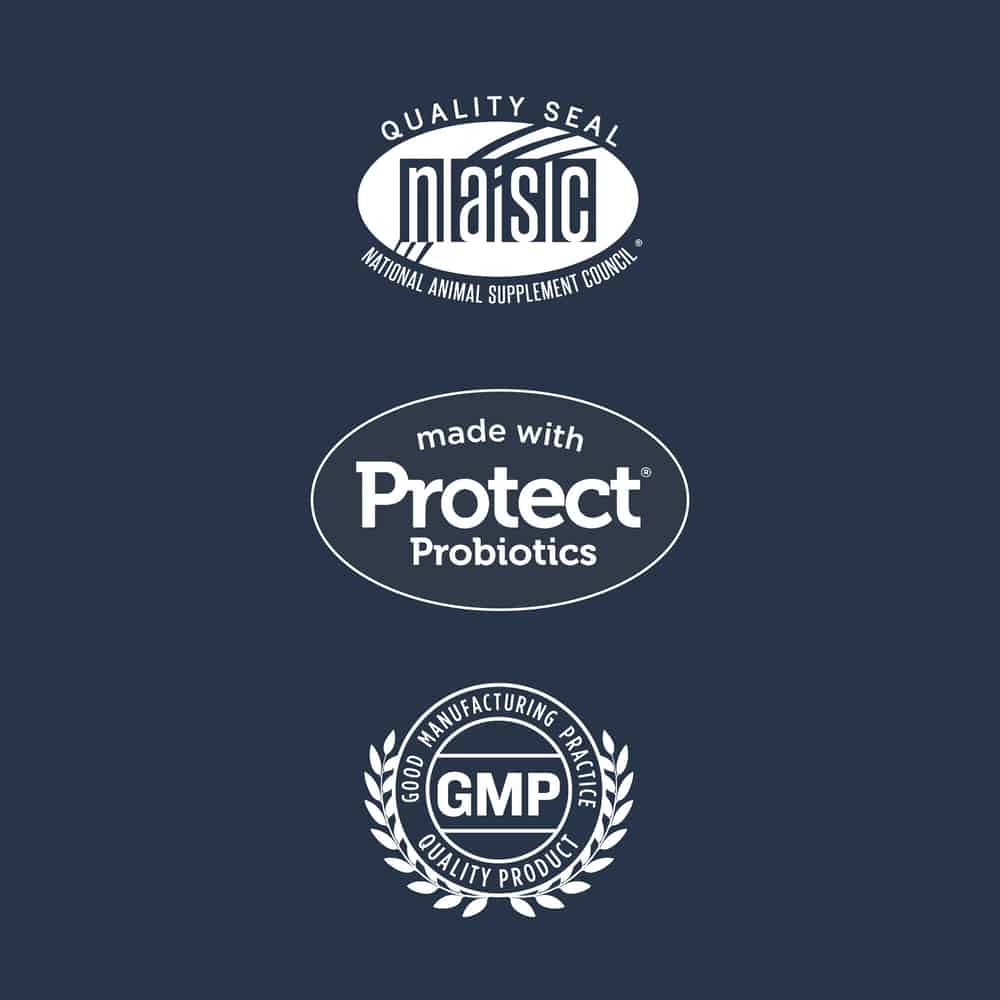 | Brewers Dried Yeast, Milled Flaxseed, Glucosamine Hydrochloride, Chicken Bone Broth Powder, Chondroitin Sulfate, Fish Oil Powder, Silicon Dioxide, Natural Flavor, Dried Enterococcus faecium Fermentation Product, Dried Lactobacillus plantarum Fermentation Product, Dried Lactobacillus acidophilus Fermentation Product, Dried Lactobacillus reuteri Fermentation Product, Dried Bifidobacterium animalis Fermentation Product, L-Carnitine. |