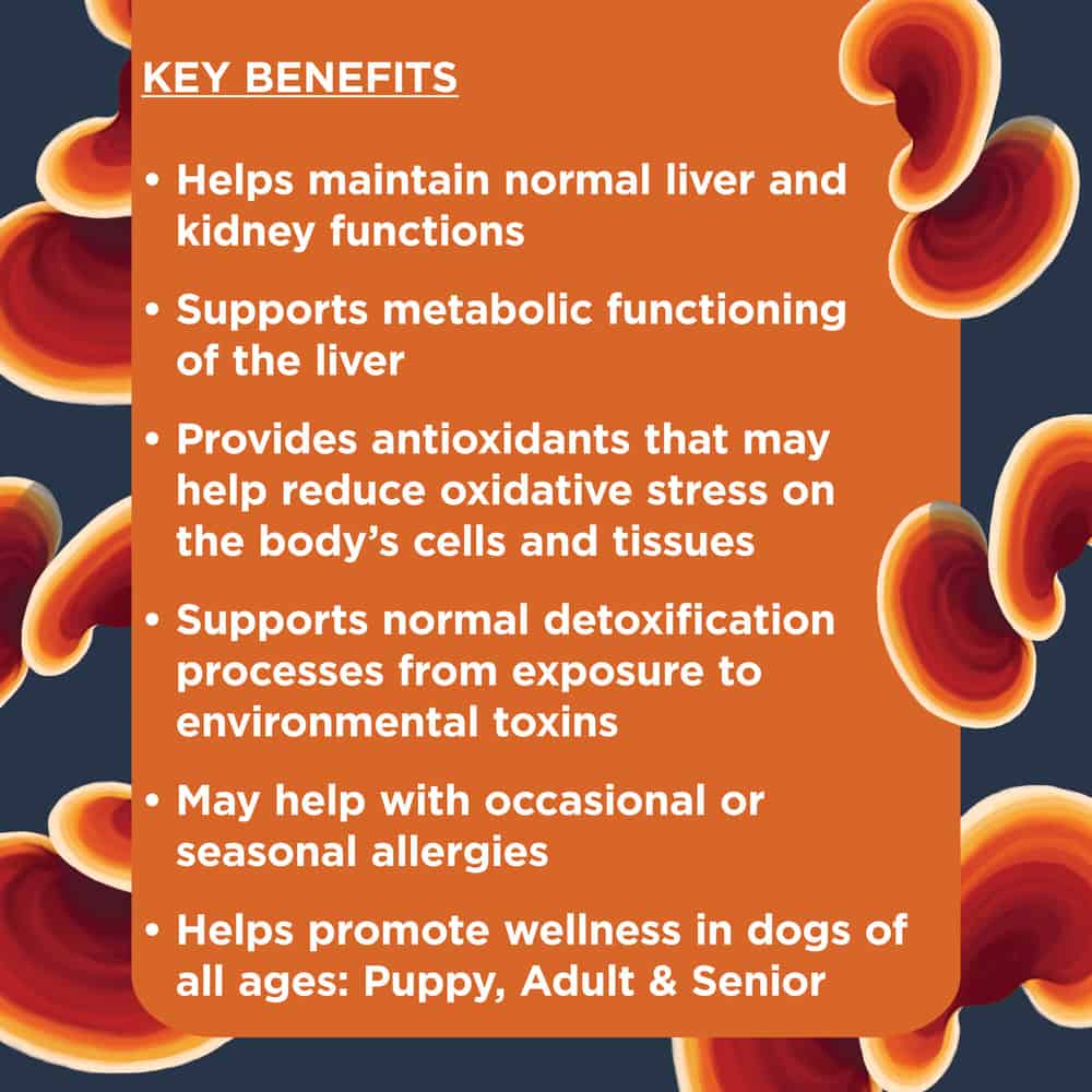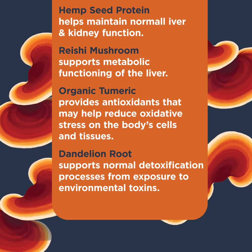 Scientifically formulated with a variety of functional ingredients featuring hemp seed protein and reishi mushrooms. In addition, these soft chews contain organic turmeric and dandelion root. Together, these advanced ingredients help support your dog's liver and kidney function as well as healthy detoxification processes. It may also help reduce occasional or seasonal allergies.