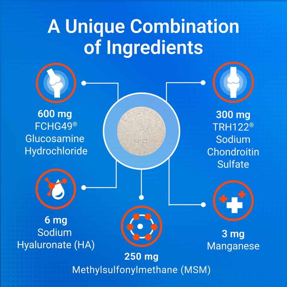- Contains glucosamine hydrochloride, chondroitin sulfate, MSM, and HA for advanced joint nourishment.