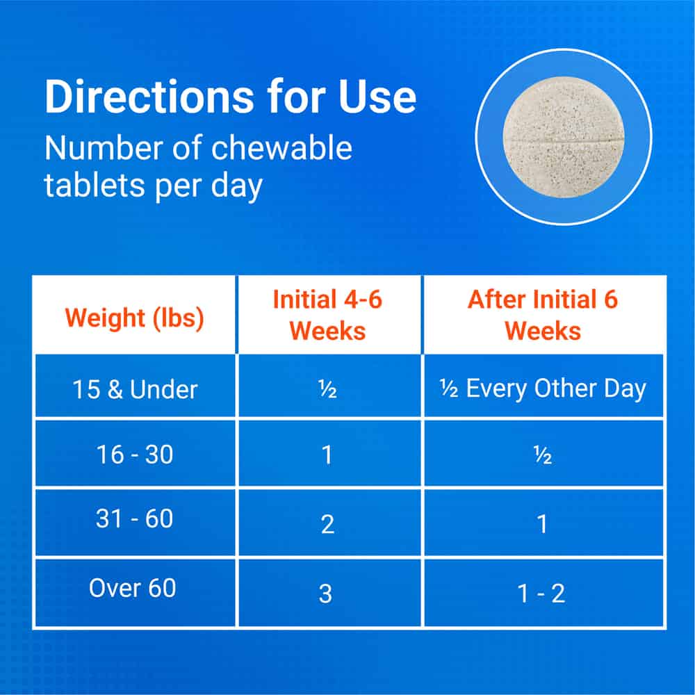 | 31 to 60 lbs | 2 Tablets per Day | 1 Tablet per Day |