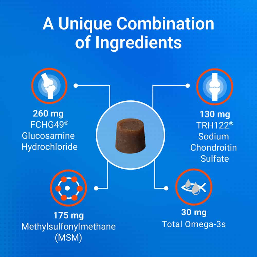 *Cosequin contains FCHG49 Glucosamine and TRH122 Sodium Chondroitin Sulfate, proprietary veterinary researched specifications.