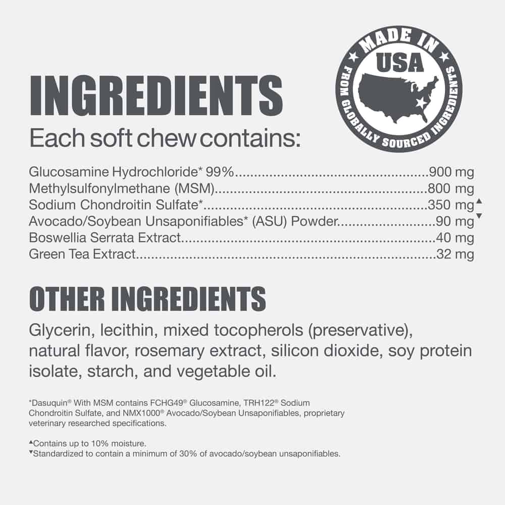 Nutramax Dasuquin with MSM Joint Health Soft Chew Supplement for Dogs Ingredients: