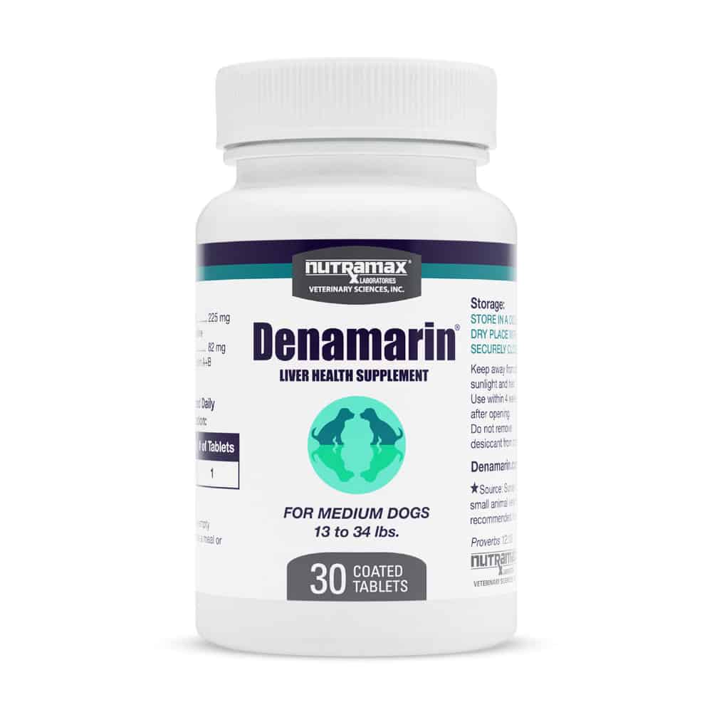 Denamarin liver supplement for dogs and cats is a patented nutritional supplement for veterinary use in dogs and cats. Denamarin combines a pure and stabilized S-Adenosylmethionine with Silybin to provide a multi-faceted approach to liver support, bile flow, and cell repair.