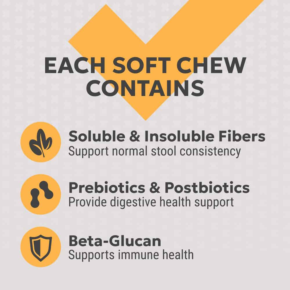 - Contains NMXFBR4, a proprietary fiber blend including psyllium husk and apple fiber for optimal stool consistency.