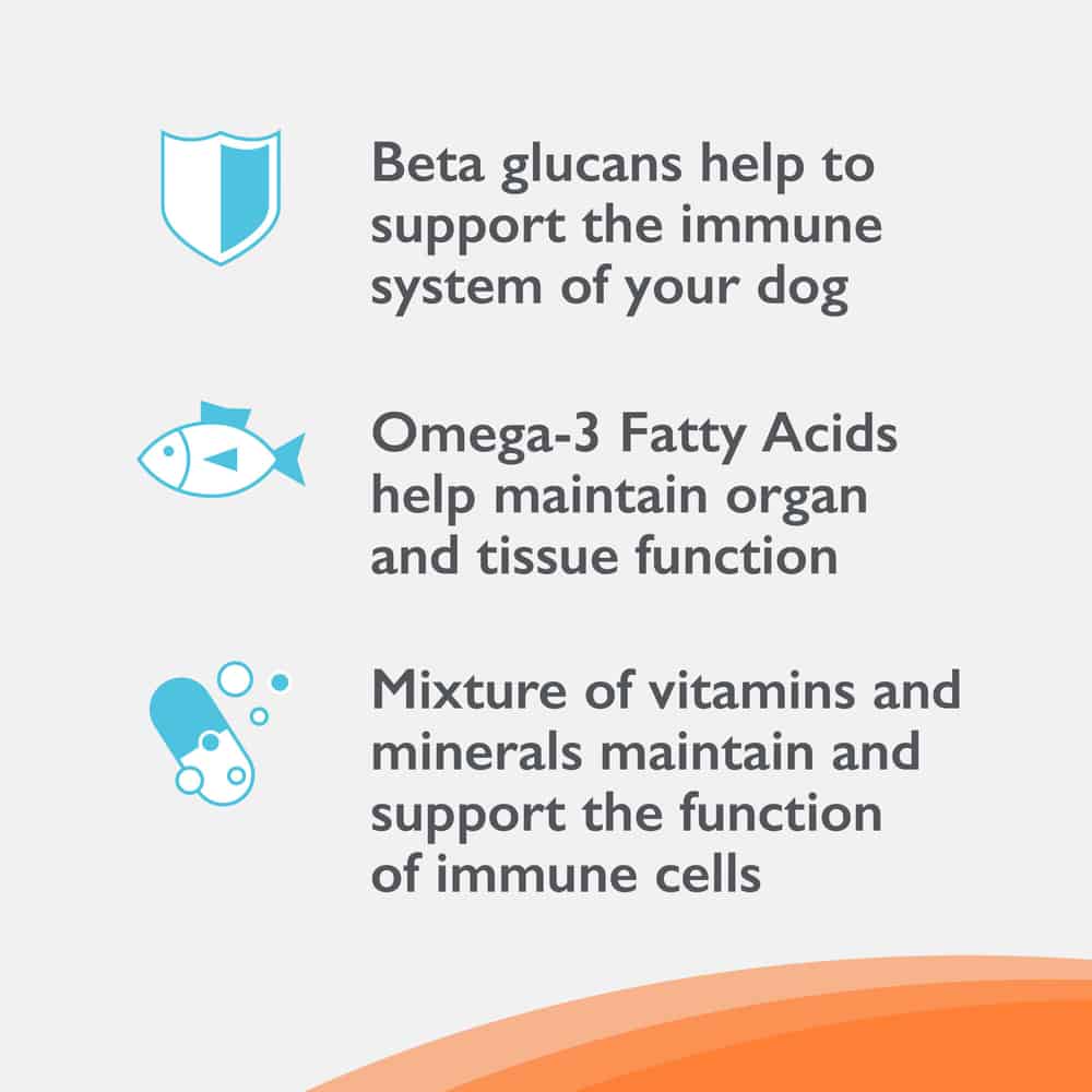 - Immune Health Support for Dogs: Imuquin contains a unique blend of beta glucans, omega-3 fatty acids including EPA and DHA, plus a mix of vitamins and minerals to help support the immune health of dogs of all ages