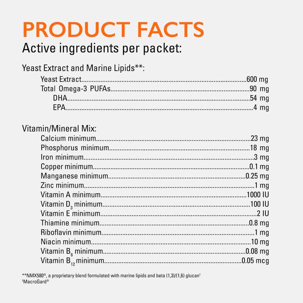 | *NMX580™, a proprietary blend formulated with marine lipids and beta (1,3)/(1,6) glucans† †MacroGard® |