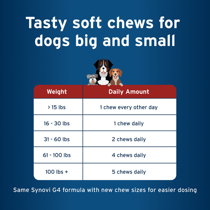 Pet Protect Synovi G4 Hip & Joint Supplement Soft Chews for Dogs Directions: