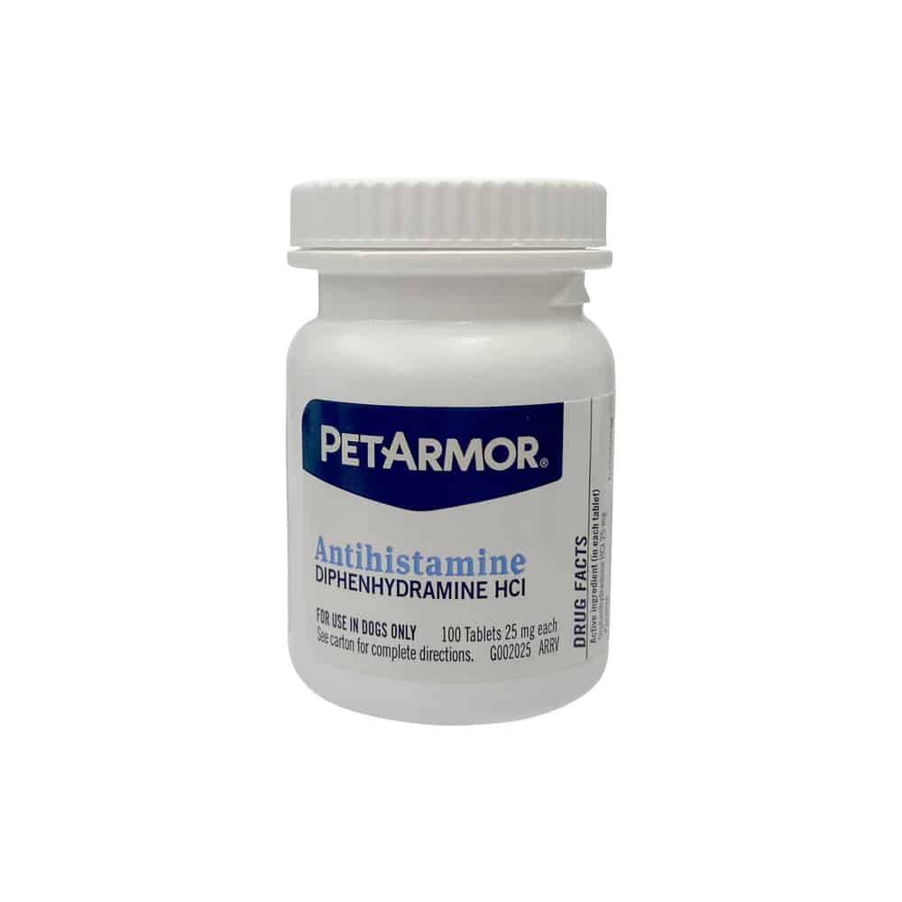 - Each affordable bottle of PETARMOR Antihistamine contains 100 tablets