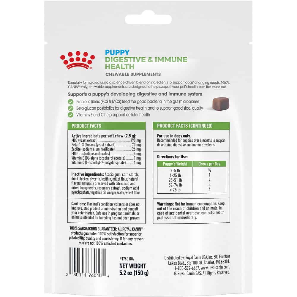 Royal Canin Puppy Digestive & Immune Health Soft Chews Supplement for Dogs Dosage: