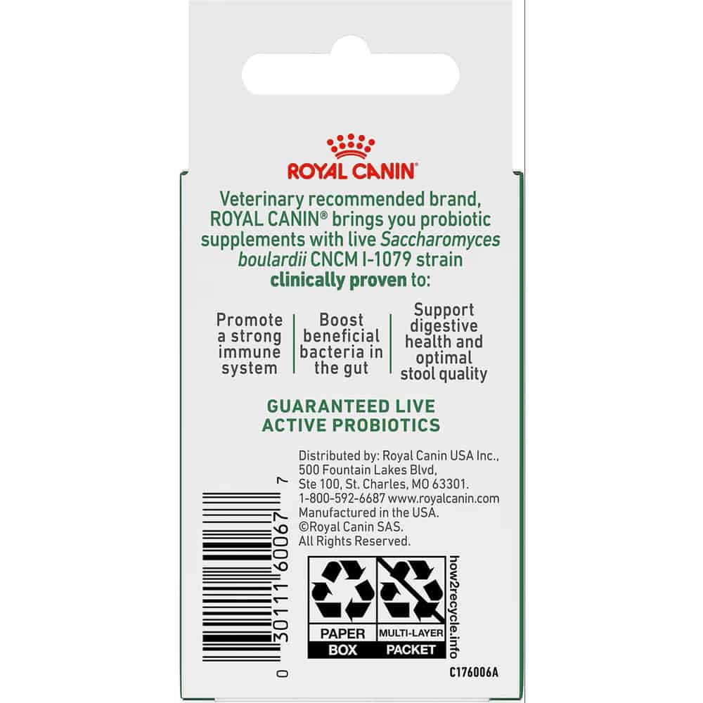 Royal Canin Probiotics Digestive and Immune Health Powder Supplement for Dogs is a convenient and delicious powder probiotic supplement that supports gut health, balance, and immunity in dogs. Each packet contains guaranteed, live Saccharomyces boulardii probiotics to improve stool quality and maintain a healthy microbiome. Simply sprinkle on wet or dry food for easy daily use. Great for dogs with sensitive stomachs or during stress-related digestive changes. Available in packs of 7 or 30 packets.