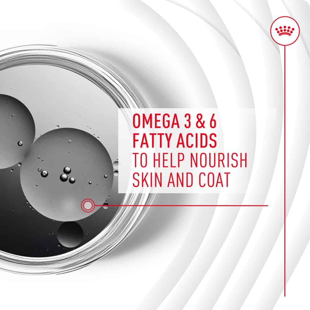 - Supports hydrated skin and a glossy coat with Omega-6 fatty acids and zinc.